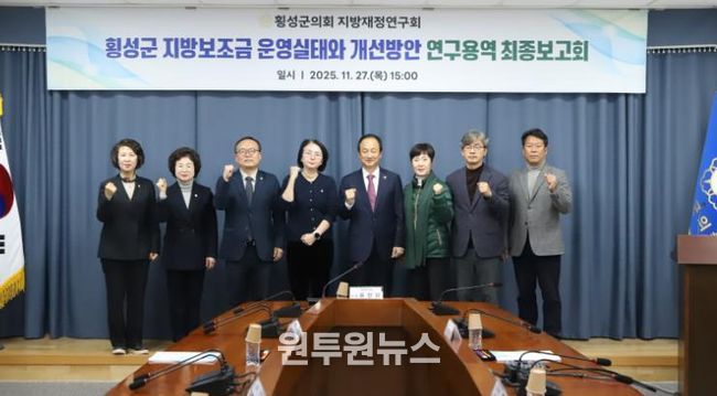(원투원뉴스) 횡성군의회 의원 연구단체인 ‘횡성군의회 지방재정연구회’는 27일 횡성군의회 3층 평통회의실에서 ‘횡성군 지방보조금 운영실태와 개선방안 연구용역’최종 보고회를 개최했다.