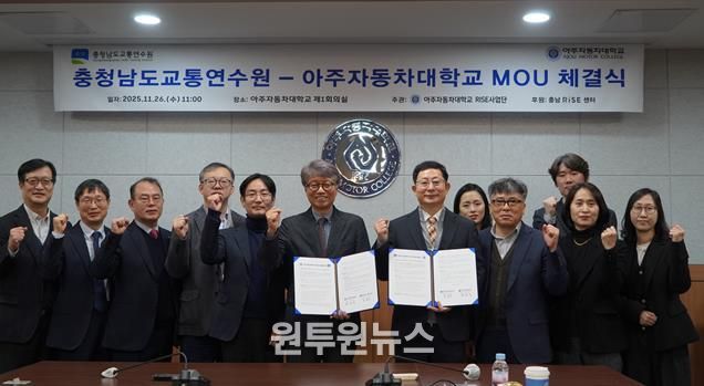 (원투원뉴스) 충청남도교통연수원은 아주자동차대학교와 손을 잡고 미래형 친환경·저탄소 교통문화 확산과 운수종사자의 전문 역량 강화를 위한 협력 체계를 구축했다.
