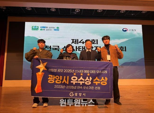 (원투원뉴스) 광양시는 산림청이 산사태 정책에 대한 사회적 관심을 높이고자 전국 지자체를 대상으로 실시한 ‘2025년 산사태 예방·대응 우수기관’ 평가에서 우수기관으로 선정돼 전국 최초로 3년 연속 우수기관에 이름을 올리는 쾌거를 이뤘다고 밝혔다.