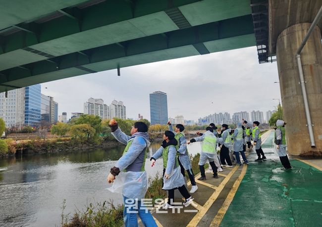 (원투원뉴스) 서울물재생시설공단은 27일 환경실천연합회와 함께 안양천에서 EM 흙공 던지기 등 수질 개선 캠페인'줍Go 던지Go 살리Go'를 실시했다고 밝혔다.