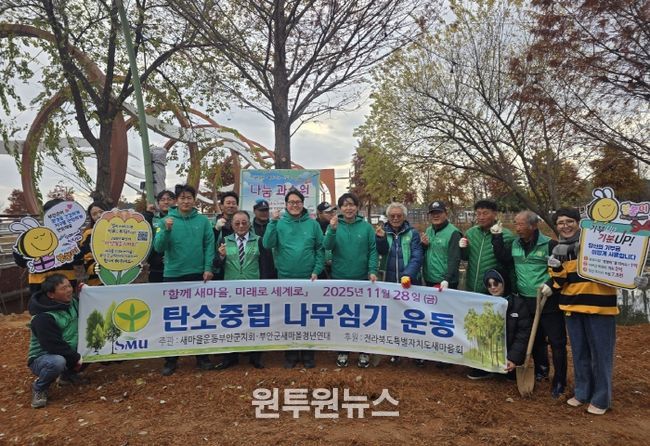 (원투원뉴스) 새마을운동부안군지회(지회장 권명식)는 28일 부안 해뜰마루 내 나눔 과수원에서 회원 50여명이 모여 부안군새마을청년연대(회장 송병준) 사업의 일환으로 기후 위기 극복과 탄소중립 실천을 위해 단감나무 50그루를 식재했다.
