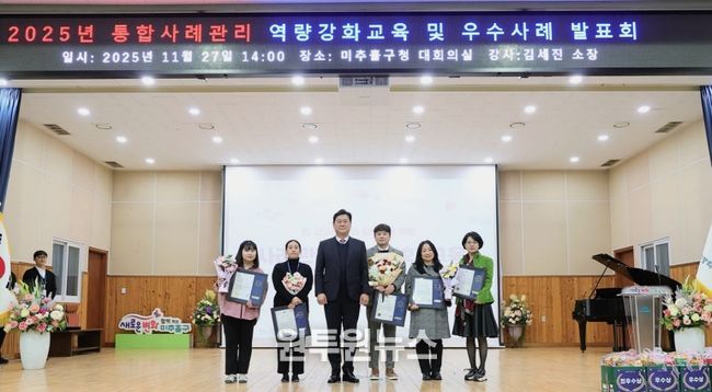 (원투원뉴스) 인천 미추홀구는 지난 27일 구청 대회의실에서 민관 사례 관리 담당자 100여 명이 참석한 가운데 ‘2025년 사례 관리 역량 강화 교육 및 우수사례 발표회’를 개최했다.