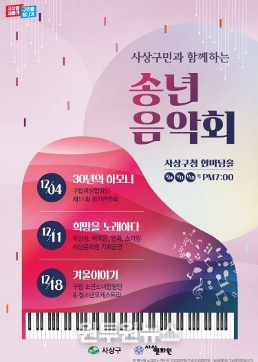 (원투원뉴스) 사상구는 2025년 연말을 맞아 구민과 함께하는 문화축제의 장‘사상구민과 함께하는 송년음악회’를 개최한다.