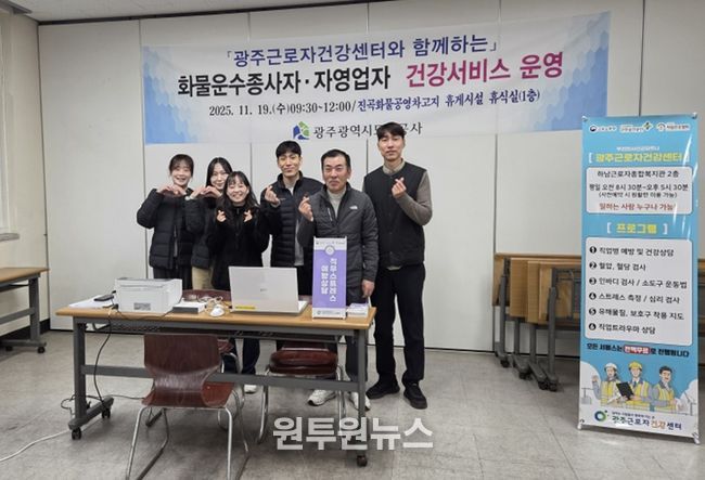 (원투원뉴스) 광주도시공사(사장 김승남)는 19일 진곡화물공영차고지 1층 휴게실에서 광주근로자건강센터와 함께 화물운수종사자와 자영업자를 대상으로 건강상담부터 뇌심혈관계 질환 예방, 건강진단 사후관리까지 아우르는 종합 ‘건강서비스’를 운영했다고 밝혔다.