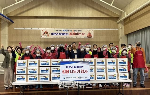 (원투원뉴스) 광주도시공사(사장 김승남)는 지난 25일 광주김치타운에서 광주광역시 종합주거복지센터와 함께 공공임대주택 이주 어르신의 따뜻한 겨울나기를 지원하는 ‘사랑의 김장 담그기’ 행사를 개최했다고 밝혔다.