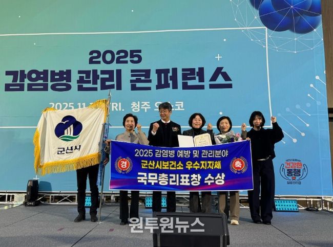 (원투원뉴스) 군산시가 질병관리청이 주최한 ‘2025년 감염병관리 콘퍼런스’ 에서 '2025년 지자체 감염병 예방·관리 업무 평가' 우수지자체로 선정되어 국무총리표창을 수상했다.