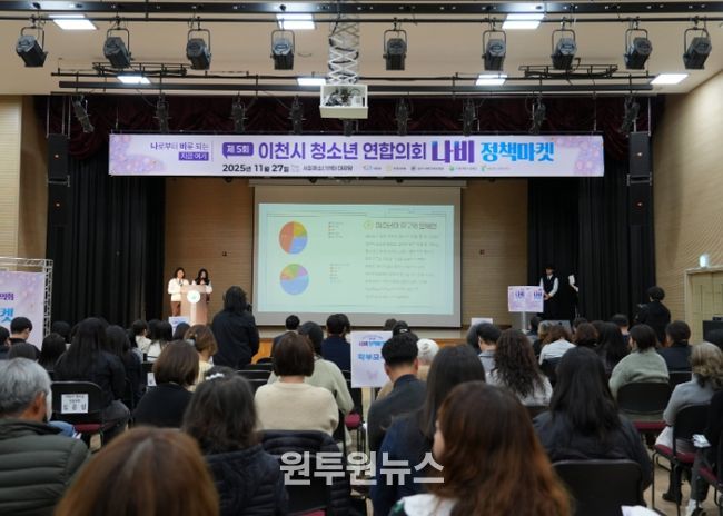(원투원뉴스) 이천교육지원청은 11월 27일 서희청소년센터에서‘제5회 이천시청소년연합의회 나비 정책마켓’을 개최했다. 올해 정책마켓은 청소년이 직접 지역 문제를 진단하고 정책을 제안하는 이천형 청소년 참여 행사로, 실질적인 정책 반영까지 연계되는 특징을 갖고 있다. 이천시청소년연합의회는 2021년 이천시, 이천교육지원청, 이천시청소년재단의 협약으로 출범했으며, ‘나비’라는 이름에는 ‘나로부터 비롯되는 지금, 여기’라는 의미가 담겨 있다.