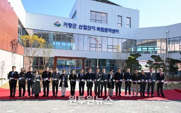 (원투원뉴스) 거창군은 지난 28일 산업단지 내 근로자와 지역 주민이 함께 어울릴 수 있는 소통과 문화의 공간인 '거창군 산업단지 복합문화센터'준공식을 개최했다.