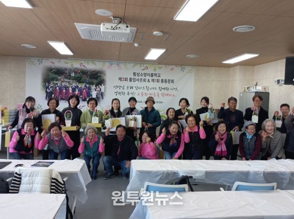 (원투원뉴스) 횡성군은 성인 문해 학습장인 횡성소망이룸학교의 제3회 졸업사은회 및 제1회 총동문회를 28일 평생학습관 5층 다목적강당에서 개최했다.