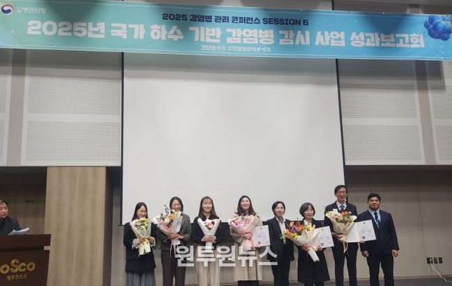 (원투원뉴스) 대전보건환경연구원은 28일 청주 오스코에서 열린 ‘2025년도 감염병관리 콘퍼런스’에서 하수기반 감염병 감시 우수기관으로 선정되어 질병관리청장 기관 표창을 받았다.
