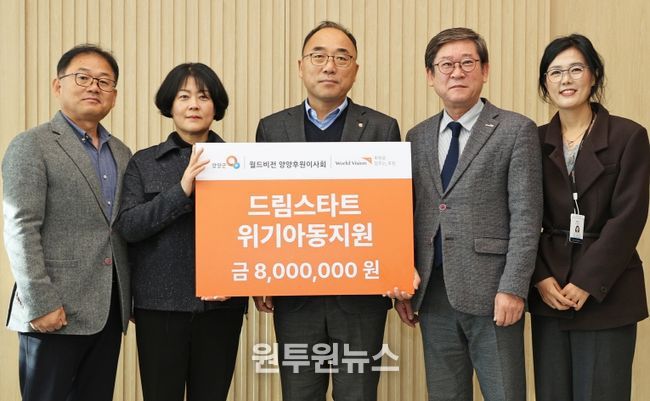 (원투원뉴스) 양양군은 11월 28일 오전 10시, 월드비전 강원사업본부(본부장: 신재권)로부터 드림스타트 위기아동 지원금 8백만원을 전달받았다.