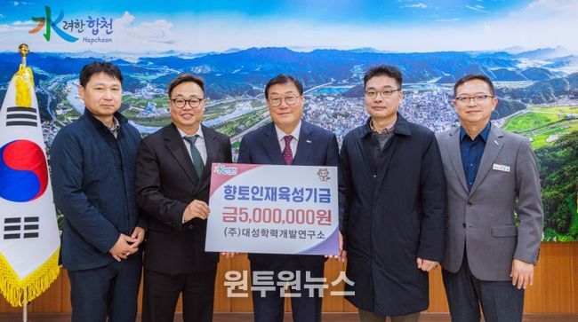 (원투원뉴스) ㈜대성학력개발연구소는 27일, (재)합천군인재육성재단(이사장 김윤철)을 방문해 합천군 향토인재육성기금 500만원을 기탁했다.