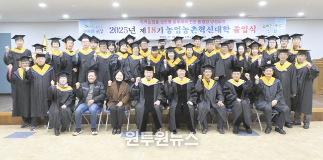 (원투원뉴스) 순창군은 28일 농업기술센터 다목적 강당에서 제18기 농업농촌혁신대학 졸업식을 개최하고, 9개월간의 교육과정을 성실히 이수한 교육생들에게 졸업장을 수여했다.