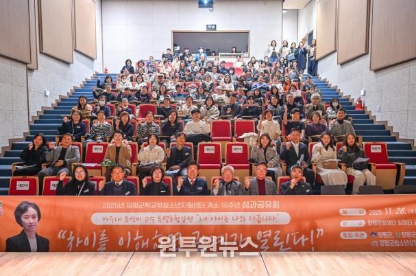 (원투원뉴스) 양평군학교밖청소년지원센터 꿈드림은 지난 26일 오후 4시, 양평문화재단 씨어터공연장 2층에서 ‘2025년 성과 공유회 및 명사특강’을 개최했다. 이날 행사에는 100명 이상이 참석해 뜨거운 관심 속에 성황리에 마무리됐다.