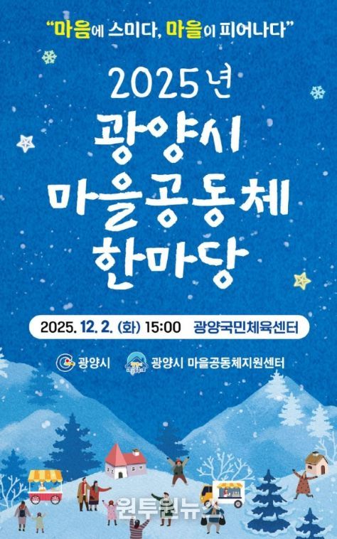 (원투원뉴스) 광양시는 오는 12월 2일 오후 3시, 광양국민체육센터에서 ‘2025년 광양시 마을공동체 한마당’을 개최한다고 밝혔다.