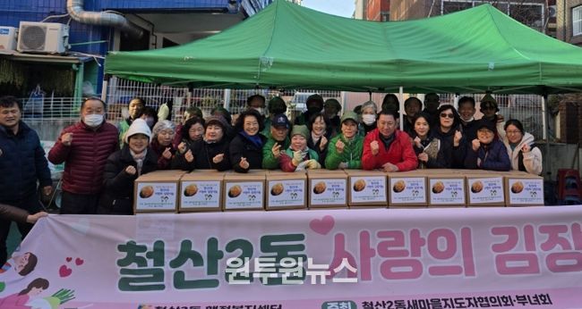 (원투원뉴스) 광명시 철산2동 새마을지도자협의회와 새마을부녀회는 28일 연말을 맞아 관내 저소득층 이웃들에게 직접 담근 김장김치를 전달하는 나눔 행사를 진행했다.