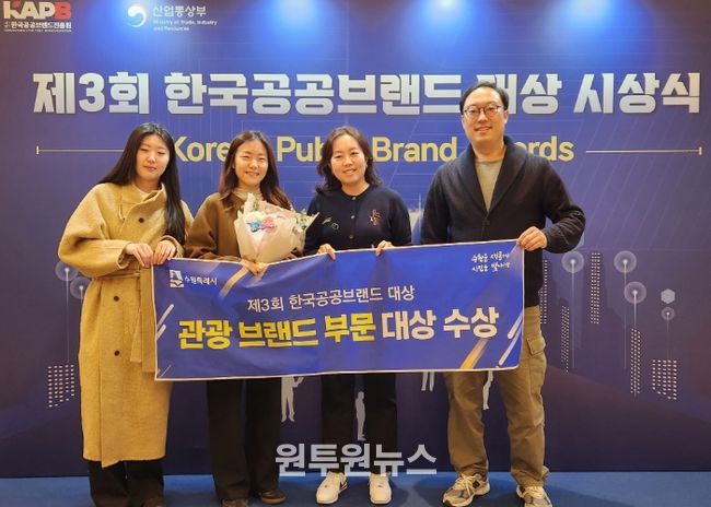 (원투원뉴스) 수원특례시는 한국공공브랜드진흥원이 주관한 ‘제3회 한국 공공브랜드 대상’에서 관광 브랜드 부문 ‘대상’을 받았다. 시상식은 28일 잠실 한국광고문화회관 대회의장에서 열렸다.