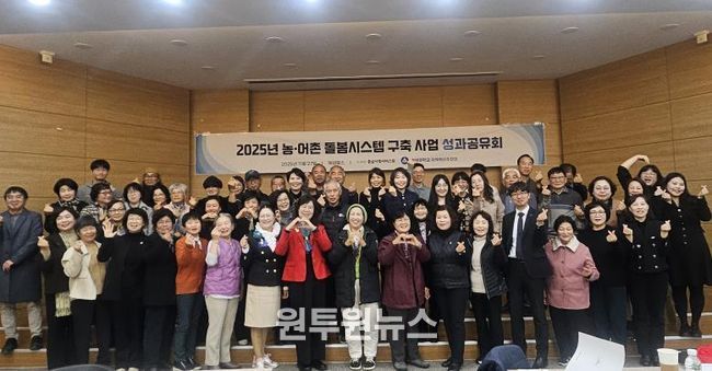 (원투원뉴스) 충남사회서비스원은 11월 27일 홍성 에덴힐스에서 사업참여자 60여명이 모인 가운데 2025년 농·어촌 돌봄시스템 구축사업 성과공유회를 개최했다.