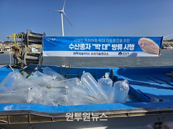 (원투원뉴스) 군산시는 관내 해역 어족자원 감소에 대응하고자 전북특별자치도 수산기술연구소와 협의하여 인공산란과 수정란 확보를 통해 성장시킨 건강한 박대종자 5만미를 11월 28일 옥도면 비안도 해역에 무상방류했다고 밝혔다.
