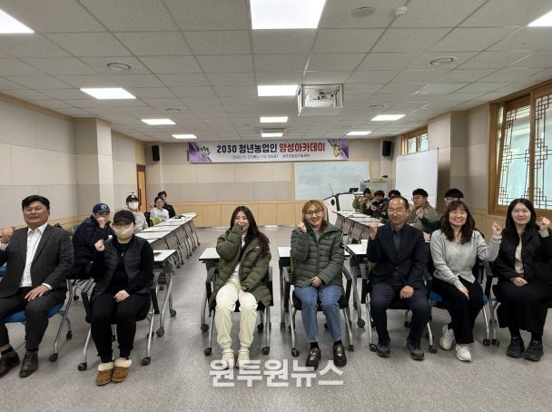 (원투원뉴스) 성주군 농업기술센터는 11월 27일, 지역 청년농업인 17명이 참석한 가운데 실무 중심의 교육과정인 ‘2030 청년농업인 양성아카데미’개강식을 개최했다.