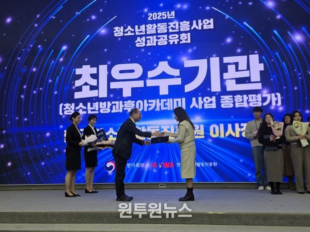 (원투원뉴스) 증평군청소년수련관(관장 김병노) 방과후아카데미가 ‘2025년 청소년방과후아카데미 사업 종합평가’에서 최우수기관으로 선정돼 11월 28일 청소년활동진흥원 이사장상을 수상했다.