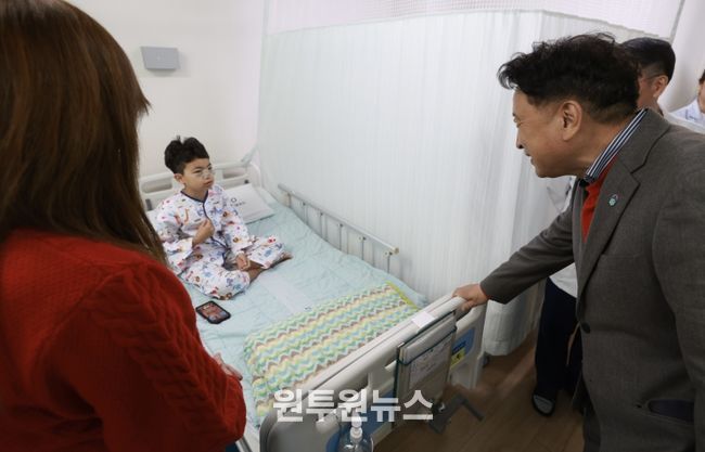 김영환 지사는 28일 청주 마이크로병원을 방문해 최근 수술을 마친 아동과 보호자를 만나 위로와 격려의 뜻을 전했다.