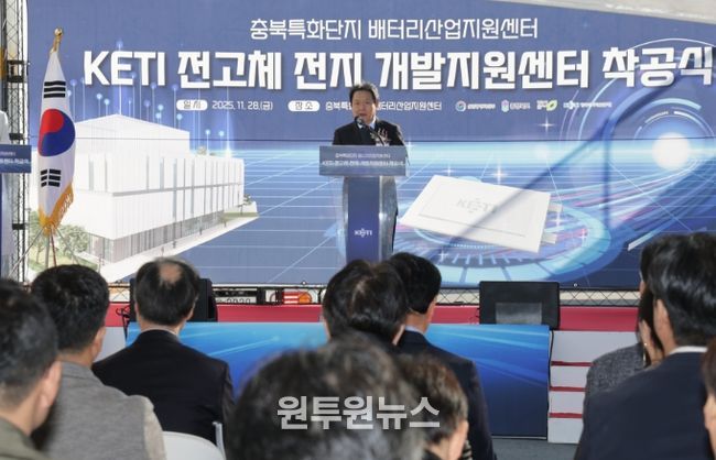 (원투원뉴스) 청주시는 28일 청원구 오창읍 송대리에서 ‘전고체전지 개발지원센터’ 착공식을 열고 대한민국 차세대 이차전지 연구·산업 생태계 고도화를 향한 본격적인 첫발을 내디뎠다고 밝혔다.