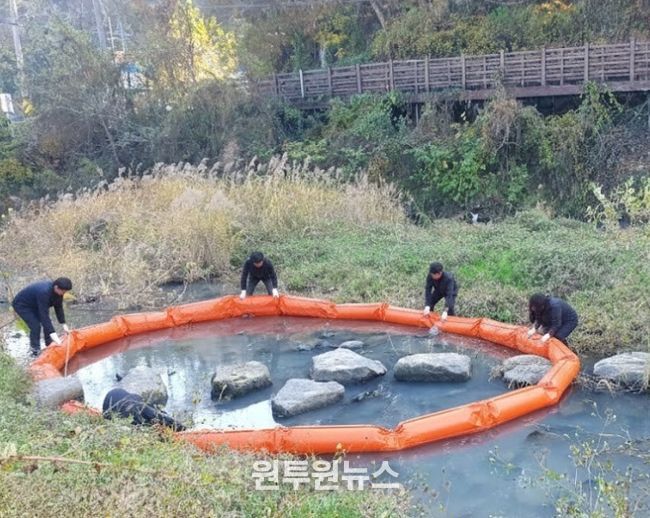 (원투원뉴스) 고성군은 소류지와 하천 등 공공수역에서 발생할 수 있는 수질오염사고에 대비해 11월 26일 환경과 직원을 대상으로 자체 방제훈련을 진행했다.