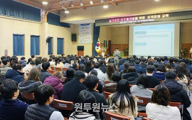 이번 교육은 청렴 및 조직문화 개선 전문가인 안영진 청렴 강사를 초청해 진행됐으며, 기존의 딱딱한 청렴 교육을 넘어 공직 내 상·하급자가 서로 소통하고 공감하며 배려하는 수평적이고 활기찬 조직 분위기를 만드는 것에 초점을 맞췄다.