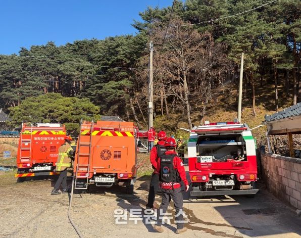 (원투원뉴스) 울진소방서는 28일 울진군 기성면 소재 울진 평해황씨 해월종택에서 중요 목조문화재 및 산불진화 유관기관 합동소방훈련을 실시했다.