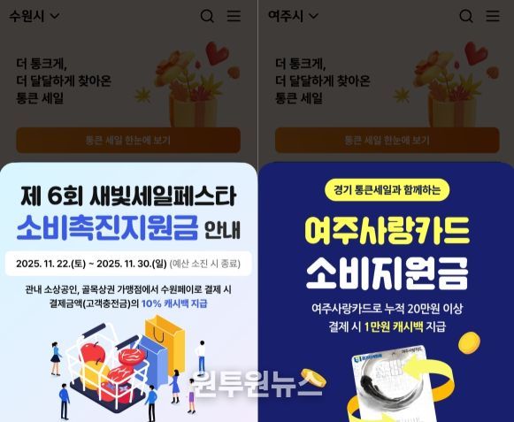 여주시는 통큰 세일 행사 기간 동안 지역화폐로 누적 20만 원 이상 결제 시 선착순 2,400명에게 ‘여주사랑카드 소비지원금’ 1만 원을 지급하는 이벤트를 연다.