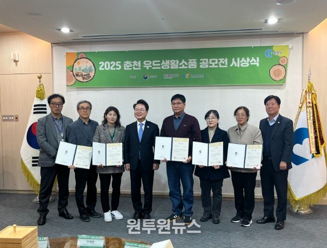 (원투원뉴스) 춘천시가 28일 시청 접견실에서 ‘2025 춘천우드페스타 우드생활소품 공모전’ 시상식을 열고 우수 작품 5점을 선정해 시상했다.