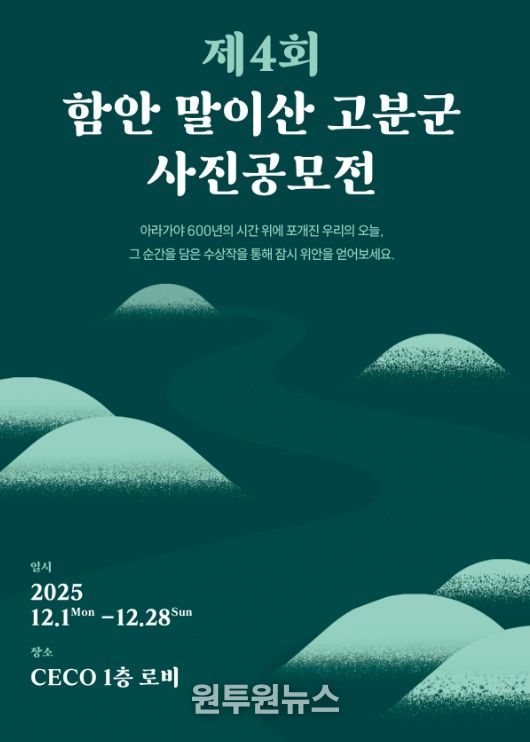 (원투원뉴스) 함안군은 12월 1일부터 12월 28일까지 28일간 창원컨벤션센터(CECO) 로비에서 ‘제4회 말이산 고분군 사진전’을 개최한다고 밝혔다.