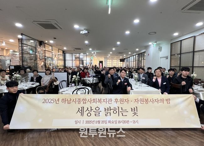 (원투원뉴스) 하남시종합사회복지관(운영법인 홀트아동복지회)은 지난 11월 25일, 플로렌스 하남점에서 150여 명의 후원자∙자원봉사자를 초청하여 ‘세상을 밝히는 빛’ 송년 행사를 개최했다.
