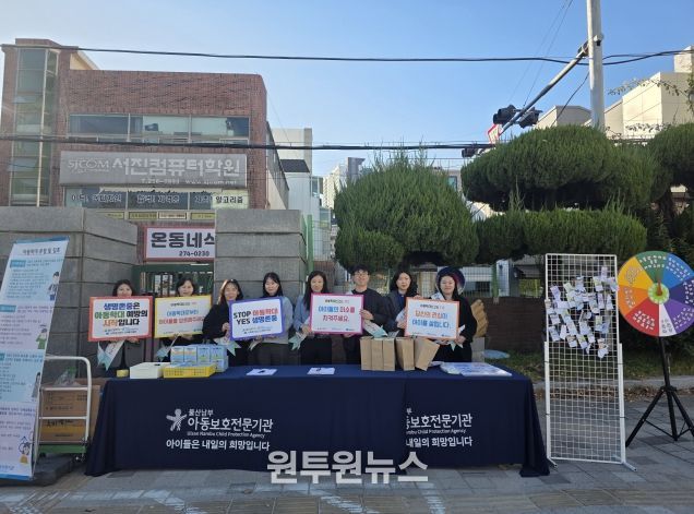 (원투원뉴스) 울산 남구는 28일‘아동학대 예방의 날'을 맞아 대현중학교 서문 일대에서 울산남부아동보호전문기관(관장 도영옥) 관계자들과 함께 아동학대 예방캠페인을 실시했다.