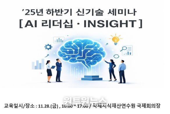 (원투원뉴스) 지식재산처 국제지식재산연수원은 11월 28일 10시 국제지식재산연수원(대전시 유성구)에서 업무관리자들을 대상으로 ‘인공지능 리더십 교육’을 진행한다고 밝혔다.