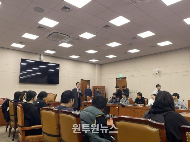 (원투원뉴스) (재)연천군청소년육성재단(연천군청소년수련관)은 교육발전특구 사업의 일환인 직업체험 이뤄DREAM 국회의원 프로그램을 청산중학교 대상으로 11월 27일 운영했다고 밝혔다. 청산중학교 3학년 학생 18명은 이날 국회의사당을 직접 방문해 프로그램에 참여했다.