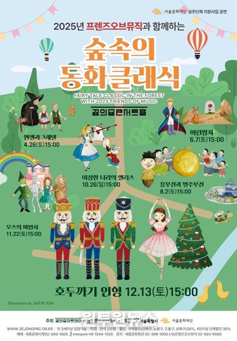 12월 13일에는 꿈의숲아트센터 상주단체 사단법인 프렌즈 오브 뮤직(Friends of Music)이 선보이는 숲속의 동화 클래식 시리즈의 마지막 작품, 차이코프스키 '호두까기인형'이 무대에 오른다. 이번 공연은 대표 교향발레를 새로운 시각으로 재구성해 어린이부터 성인까지 모든 관객이 자연스럽게 몰입할 수 있도록 구성했다.