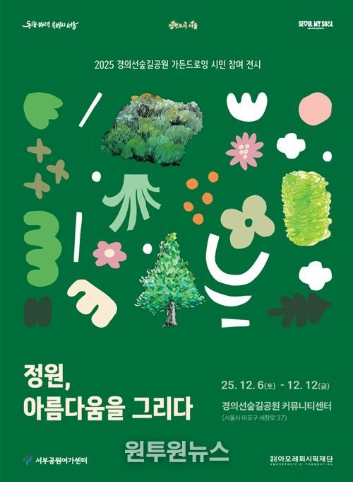 (원투원뉴스) 서울시 서부공원여가센터는 올해 4월부터 11월까지 가든드로잉에 참여한 시민작가 27명이 폐화장품으로 그려낸 '정원, 아름다움을 그리다' 전시를 경의선숲길공원 커뮤니티센터에서 12월 6일부터 12일까지 일주일간 개최한다.