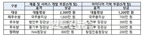 한편, 지난해에는 수출입 화물 실시간 추적 서비스 ‘쉬핑노트(Shipping Note)’를 개발한 관세청의 ‘지비티에스’팀과 산림양묘 병해충 예측 방제 정보제공 서비스인 ’시들링(seedling)’을 개발한 산림청의 ‘애프터레인’팀이 각각 대통령상을 수상했다.