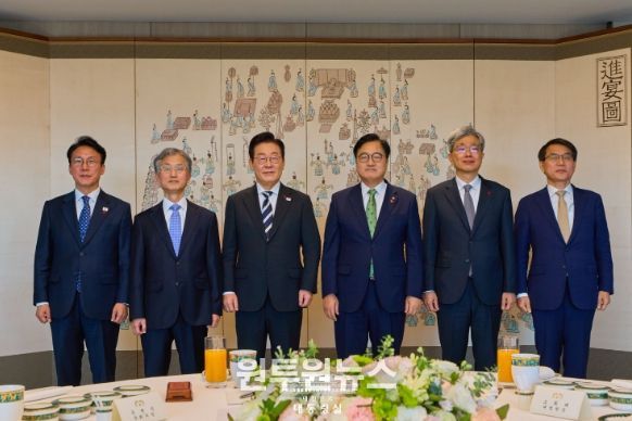 (원투원뉴스) 3일 이재명 대통령과 5부 요인의 오찬은 1시간 40분 동안 화기애애한 분위기 속에 진행됐다.