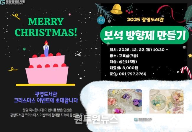 (원투원뉴스) 광양광영도서관은 도서관 이용 활성화와 시민들의 문화 향유 기회 확대를 위해 12월 1일부터 28일까지 ‘2025 크리스마스 특별 행사’를 운영한다고 밝혔다.