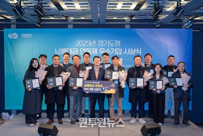 (원투원뉴스) 경기도는 4일 라마다프라자 수원호텔에서 ‘2025년 경기도형 납품대금 연동제 우수기업 시상식’을 열고 최우수상 갑산메탈㈜을 포함한 15개 참여기업을 우수기업으로 선정했다.