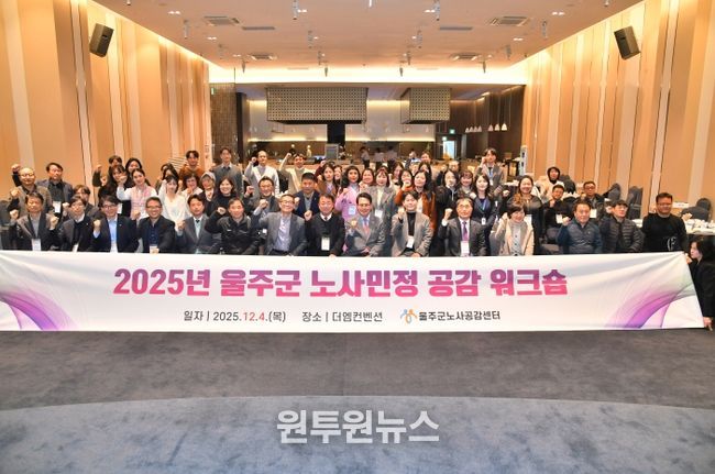 (원투원뉴스) 울주군노사공감센터(센터장 김재인)가 4일 울주군 삼남읍 더M컨벤션에서 이순걸 울주군수와 최길영 군의회 의장 등 울주군 노사민정협의회 위원을 비롯한 관계자 60여명이 참석한 가운데 ‘2025년도 울주군 노사민정 공감 워크숍’을 개최했다.