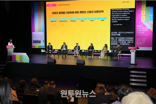넷플릭스, 라프텔, 뉴아이디 등 글로벌 플랫폼 리더 및 투자사 관계자 500여 명이 참석해 제주 고유 문화자산의 세계화 방안을 집중 논의했다.