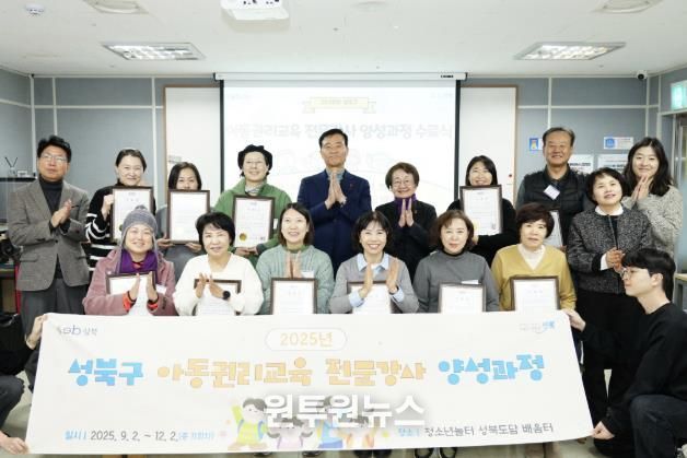 (원투원뉴스) 서울 성북구가 지난 2일 청소년놀터 성북도담에서 ‘2025년 성북구 아동권리교육 전문강사 양성과정 수료식’을 열었다.