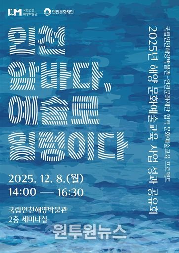 (원투원뉴스) (재)인천문화재단은 국립인천해양박물관과 협력하여 추진한 해양 문화예술교육 프로젝트 성과공유회를 오는 12월 8일 14:00부터 16:30분까지 국립인천해양박물관 2층 세미나실에서 개최한다.