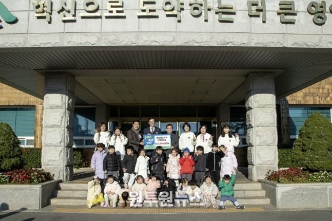 영암읍교회 어린이집 원생 20명이, 3일 영암군청을 찾아 영암군미래교육재단에 인재육성기금 100만원을 기부했다.