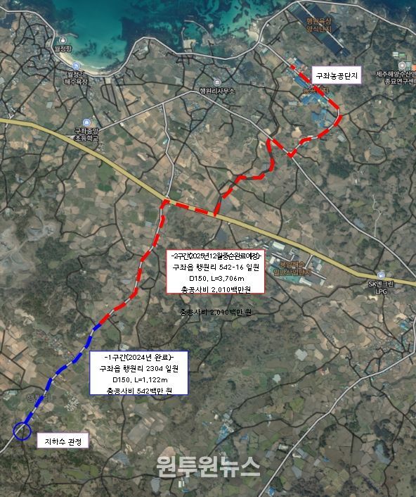 이번 사업은 2024년 6월에 착수해 제주시 구좌읍 행원리의 지하수관정에서 구좌농공단지까지 이어지는 노후 관로 구간을 전면 교체하는 내용을 포함하고 있으며, 총 사업비는 25억 5,000만 원이 투입됐다.
