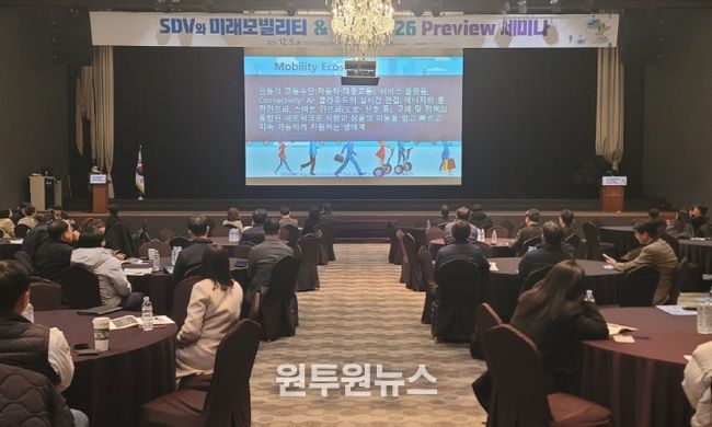 (원투원뉴스) 대구광역시와 지능형자동차부품진흥원은 12월 5일 인터불고 엑스코 호텔에서 ‘SDV⁎와 미래모빌리티 · CES 2026 프리뷰 세미나’를 개최했다.